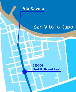 Il COCOI - Bed & Breakfast si trova a San Vito Lo Capo - (Trapani), ubicato in Via Savoia, 188, la via principale del paese. San Vito Lo Capo č facilmente raggiungibile dall’Autostrada Palermo - Mazara - Trapani (A29) uscita Castellammare del Golfo.